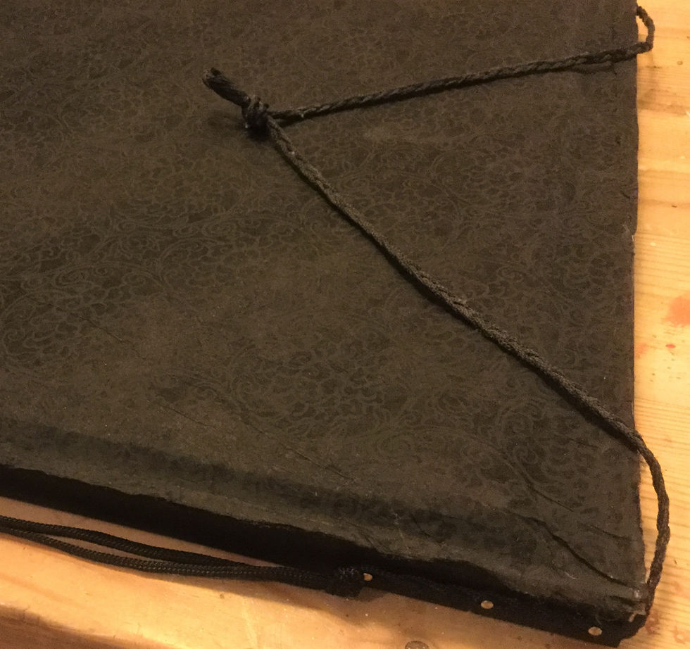 After mounting it to the frame, I sealed the back with a designer handmade chinese paper, and braided a black cord that I attached to the sides for hanging it.